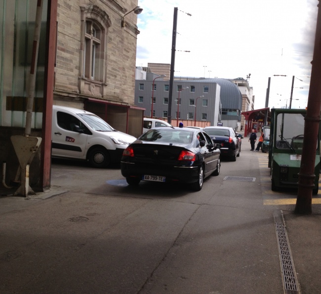 | La limousine du ministre, sur la grille de départ du circuit TGV de Strasbourg… |